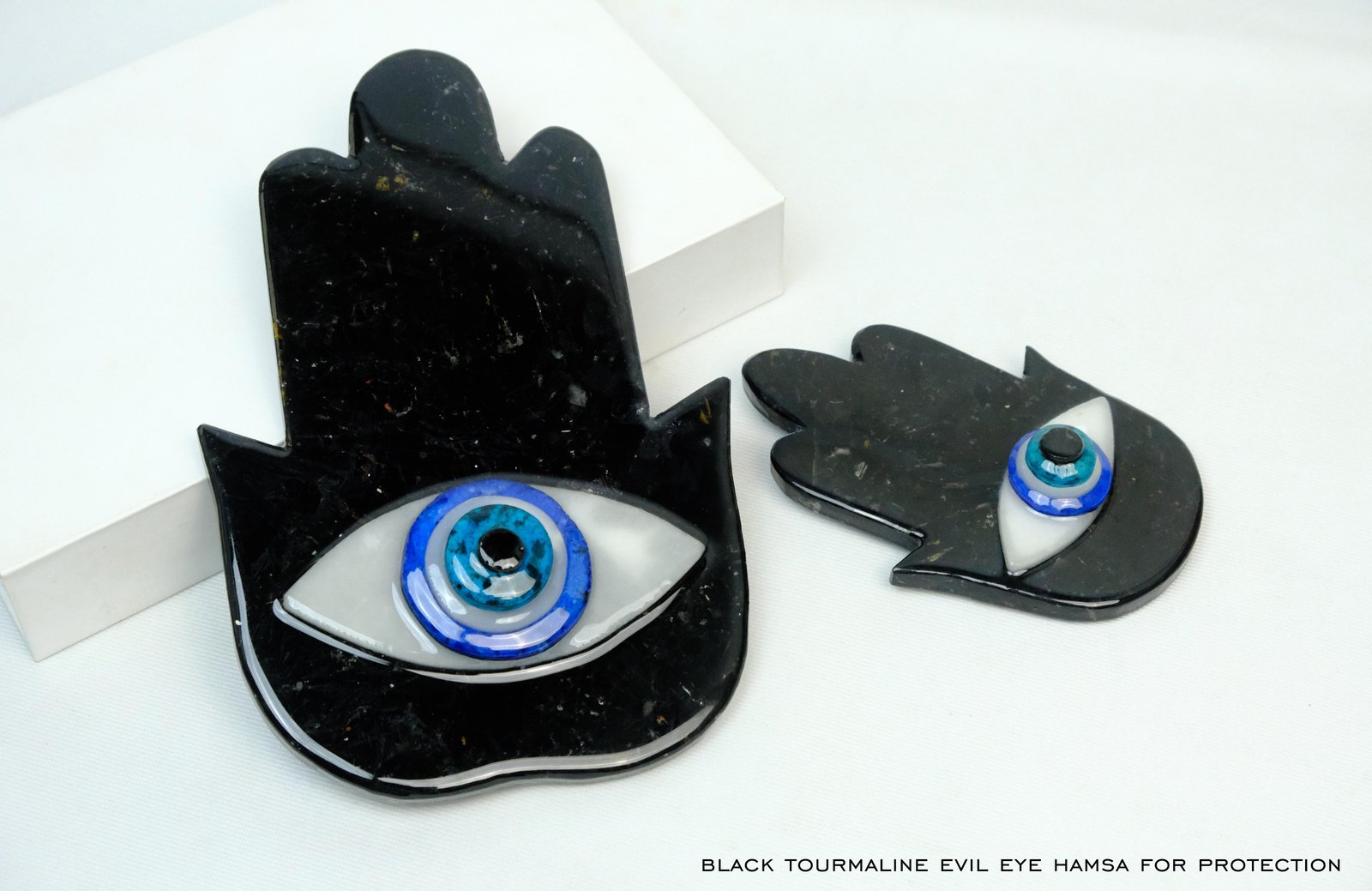 Black Tourmaline Hamsa Hand With Evil Eye Wall Hanging