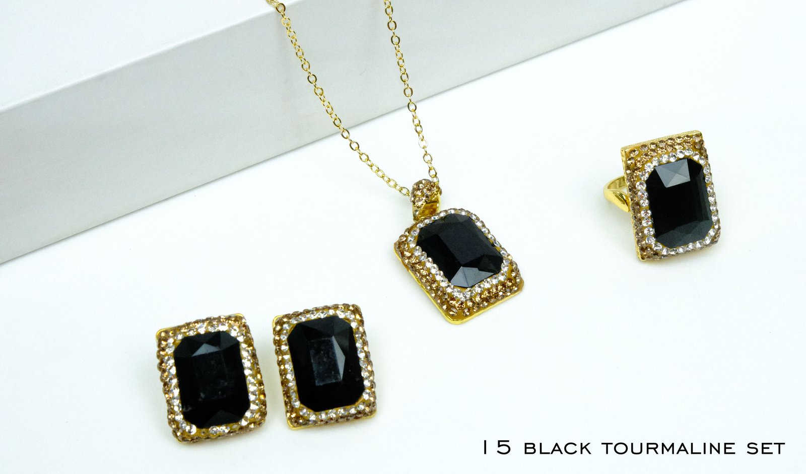 Black Tourmaline Cubical Bead Crystal Bracelet