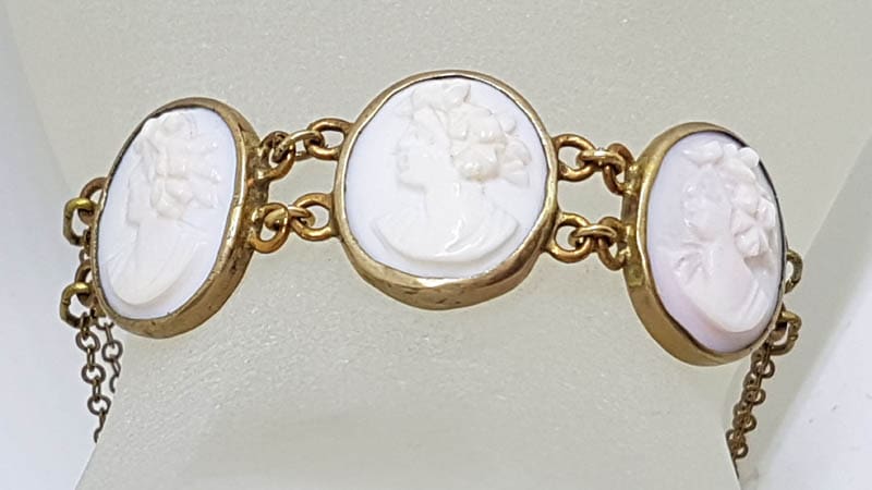 Gold Lined Pink Shell Lady Cameo Bracelet – Antique / Vintage – Vintage Costume Jewellery