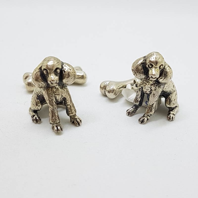 Sterling Silver Poodle Dog & Bone Cufflinks