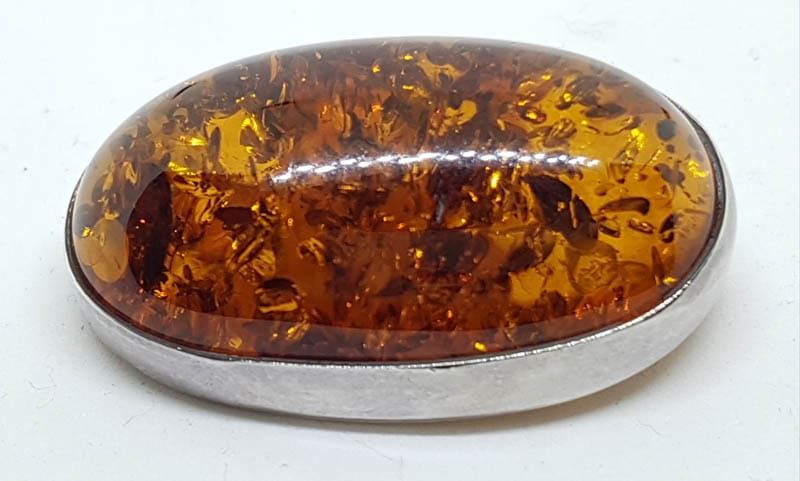 Sterling Silver Natural Amber Large Chunky Oval Brooch