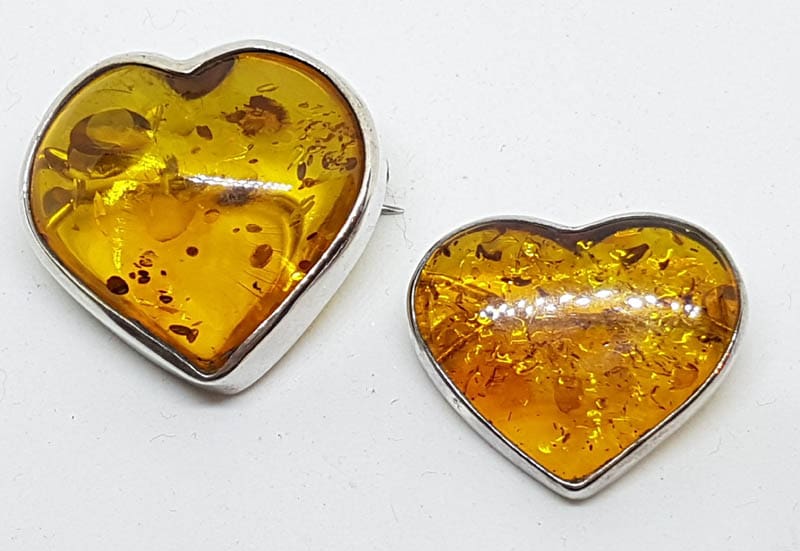 Sterling Silver Natural Amber Heart Brooch