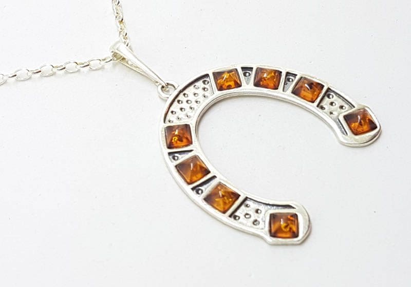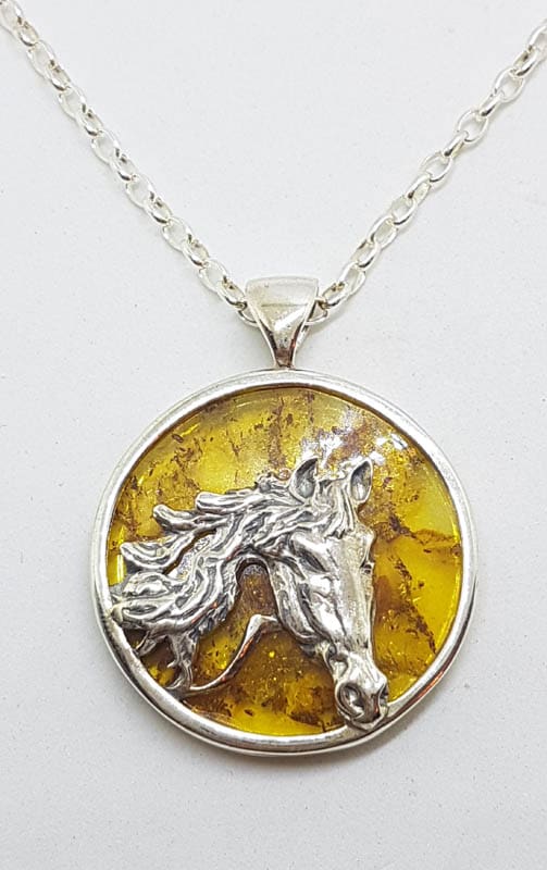 Sterling Silver Natural Amber Oval Carved Cameo Brooch / Pendant on Sterling Silver Chain