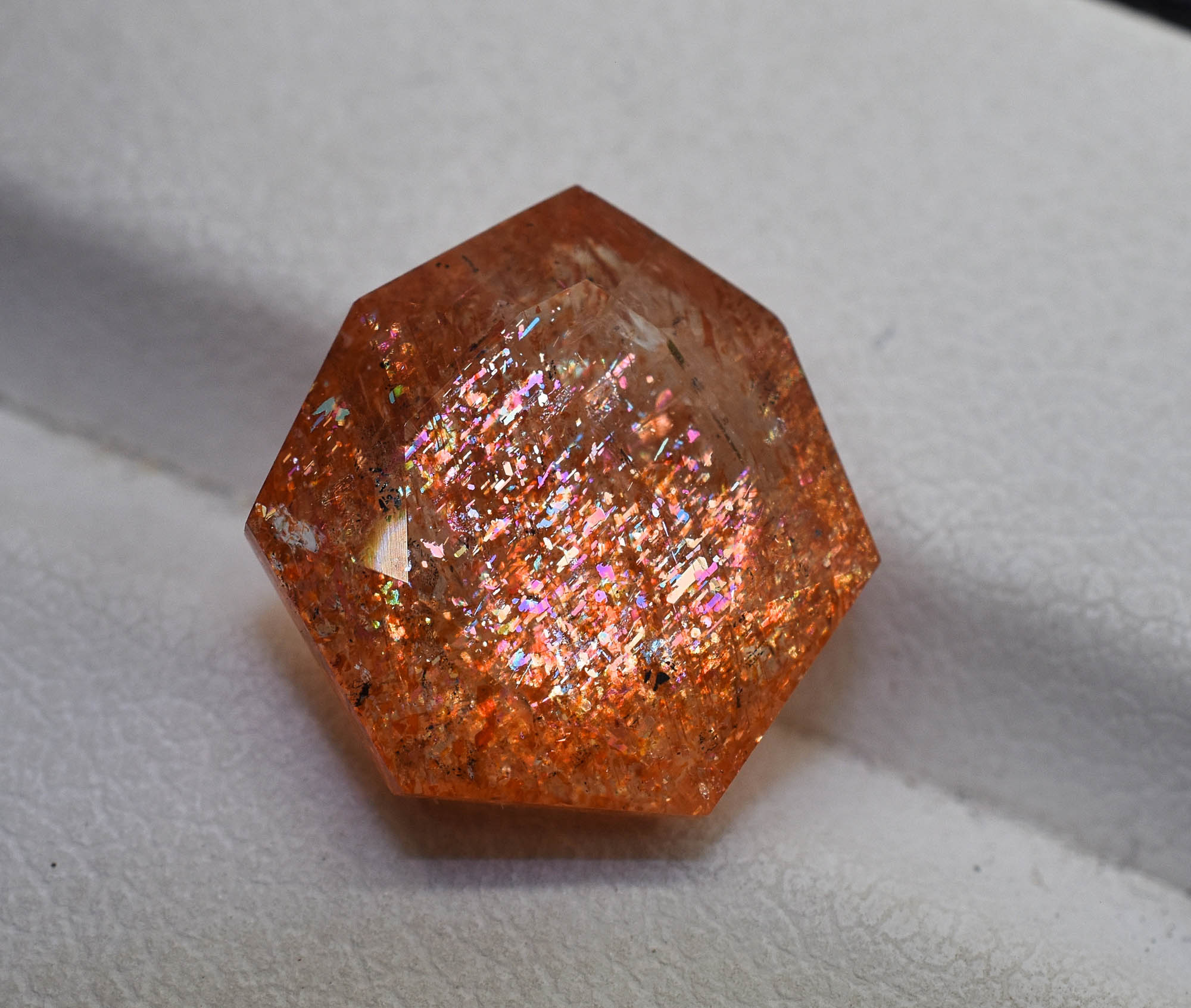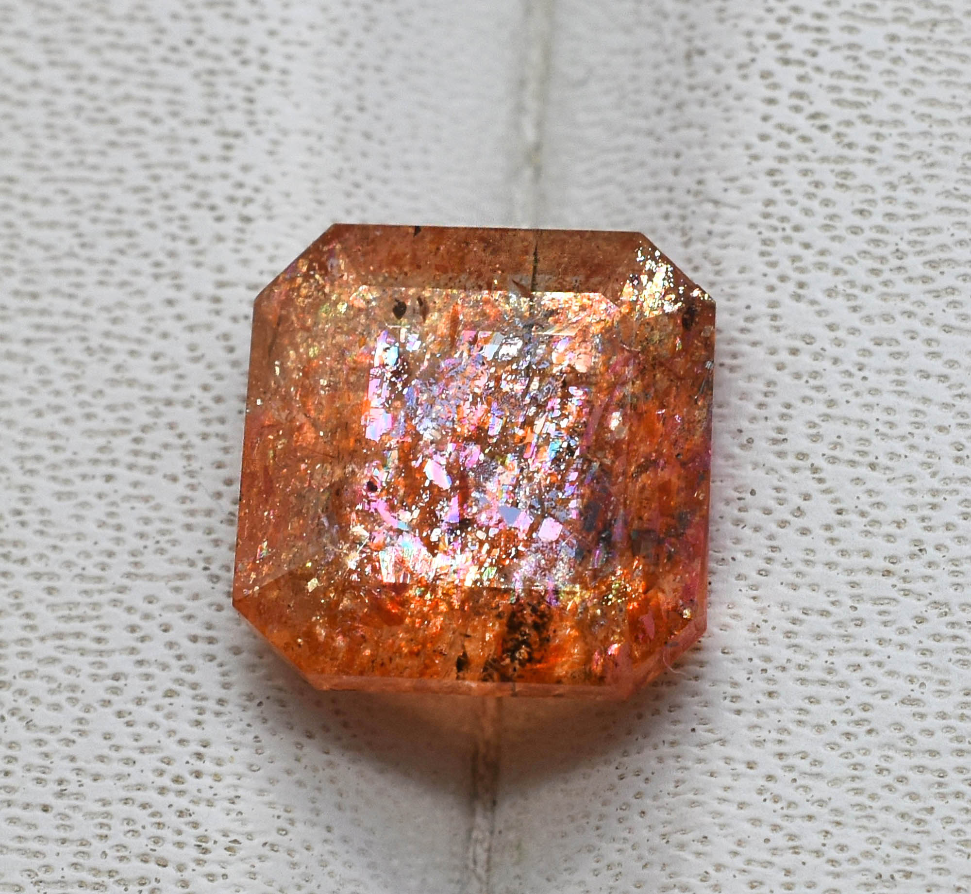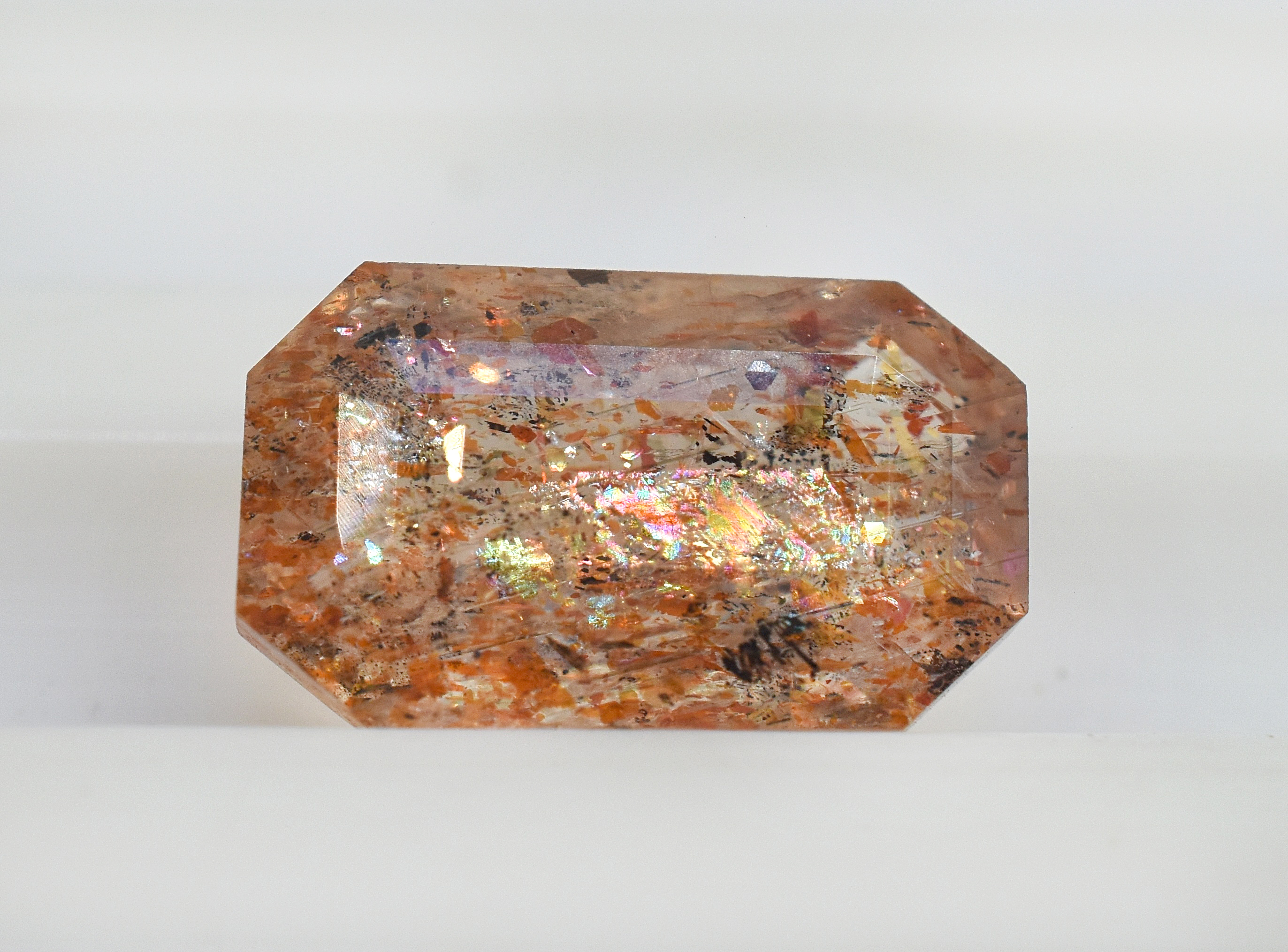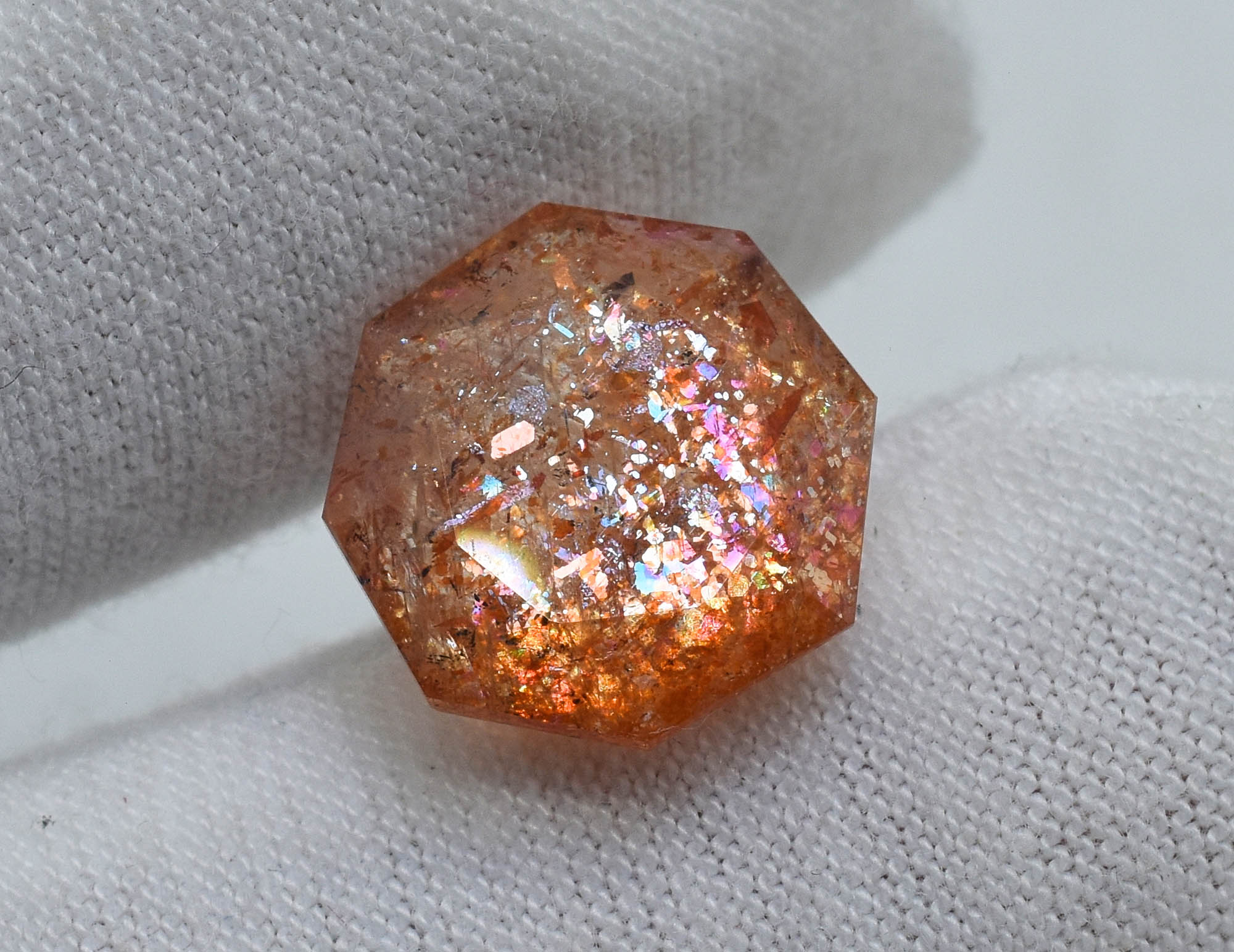 12 MM Octagon Shape Multi Flakes Sunstone 5.24 Carats Filled With Rainbow Lattice Oregon Sunstone Making For Jewelry MS-360