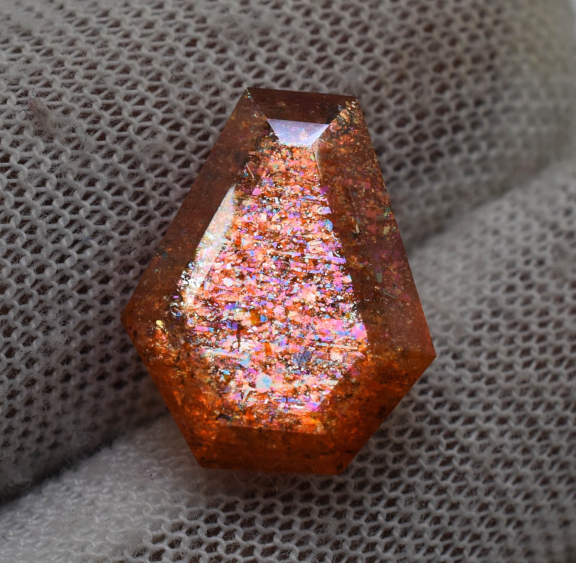 Coffin Shape Flashy Multi Flakes Sunstone 11.7X14.5 MM 5.52 Carats Filled With Rainbow Multi Flakes Sunstone For Jewelry Making MS-72