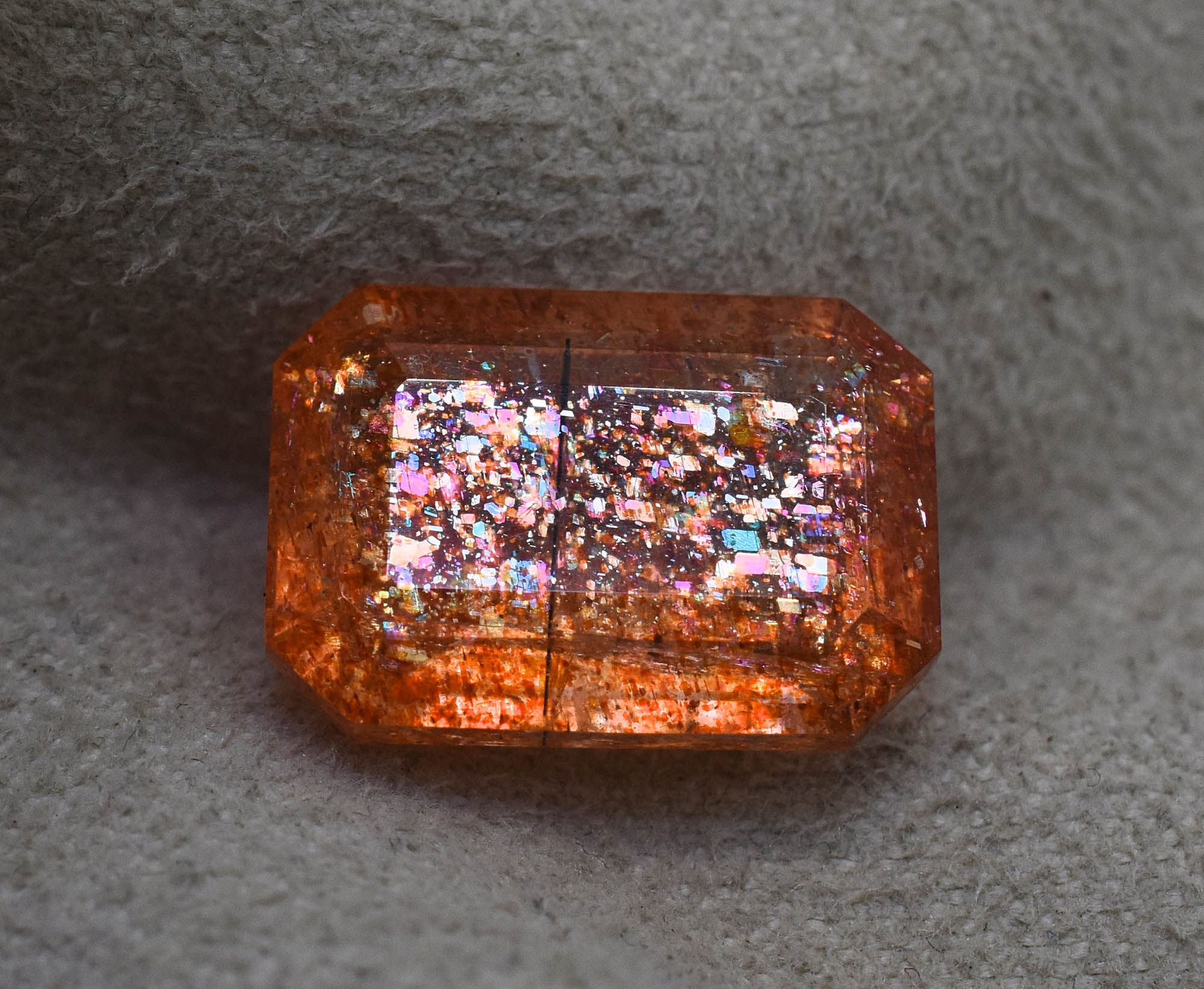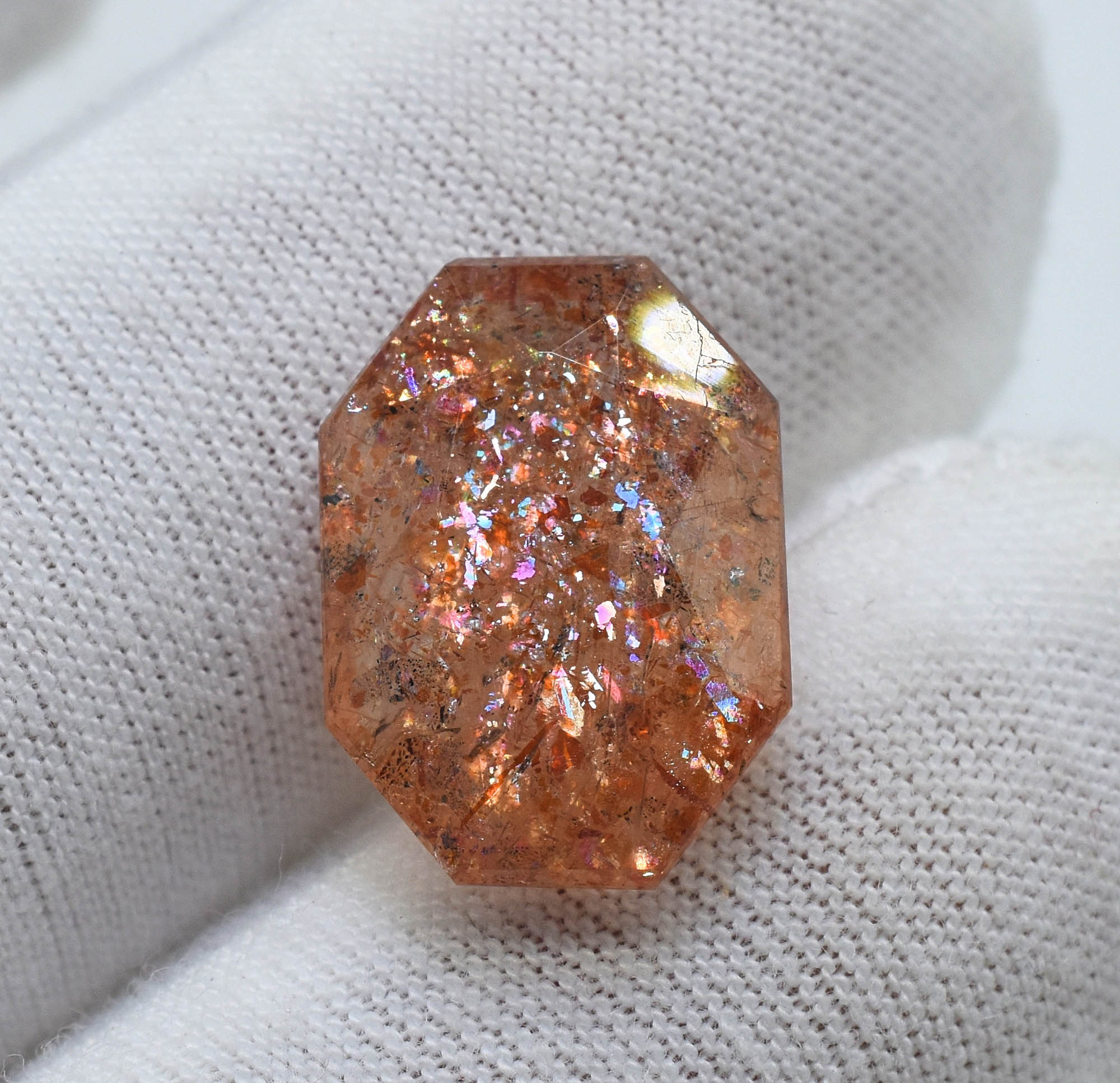 Octagon Shape Natural Multi Flakes Sunstone 12X15.3 MM 7.53 Carats Filled With Rainbow Lattice Oregon Sunstone Making For Jewelry MS-356