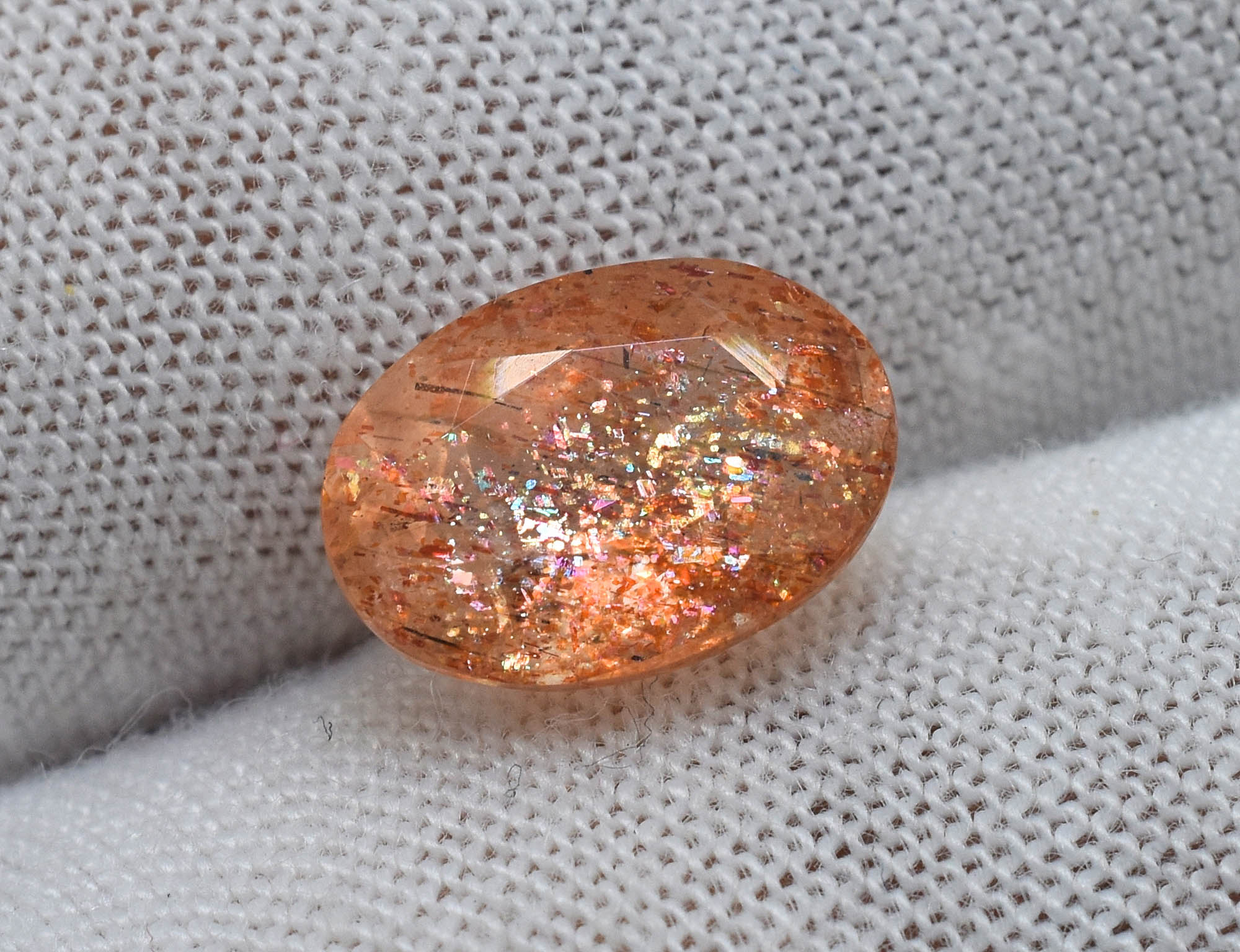 Sparkling Flashy Natural Multi Flakes Orange Sunstone 6X8 MM 1.00 Carat Filled With Rainbow Flakes Sunstone Perfect For Jewelry MS-438