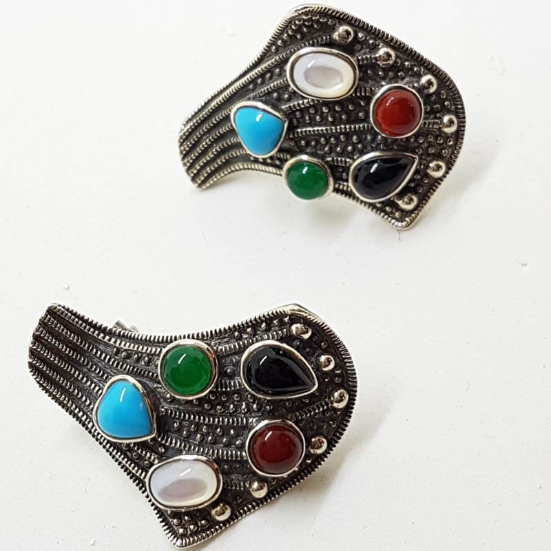 Sterling Silver Marcasite Large Multi-Gem Stud Earrings