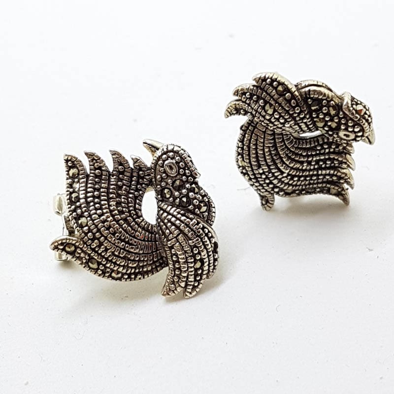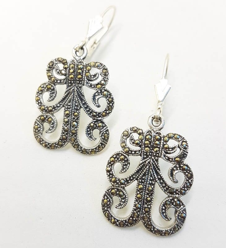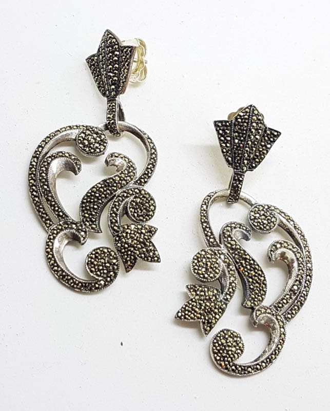Sterling Silver Marcasite Large Ornate Drop Earrings