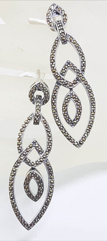 Sterling Silver Marcasite Very Long Marquis Diamond Shape Drop Earrings