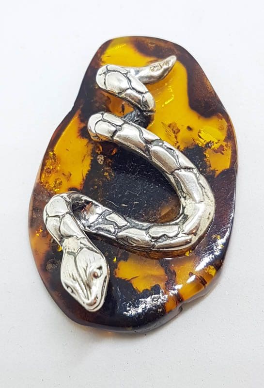 Snake / Reptile – Solid Sterling Silver Natural Baltic Amber Small Animal Figurine / Statue / Sculpture