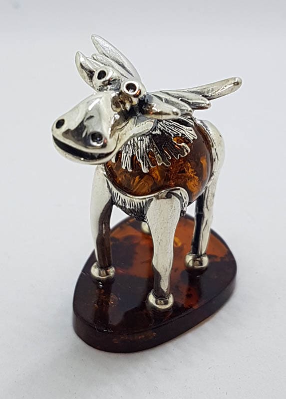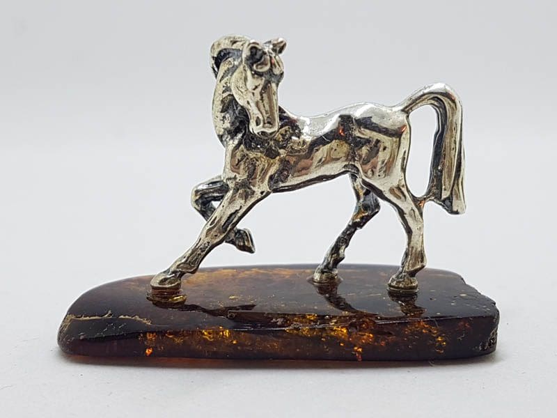 Horse / Equestrian – Solid Sterling Silver Natural Baltic Amber Small Animal Figurine / Statue / Sculpture