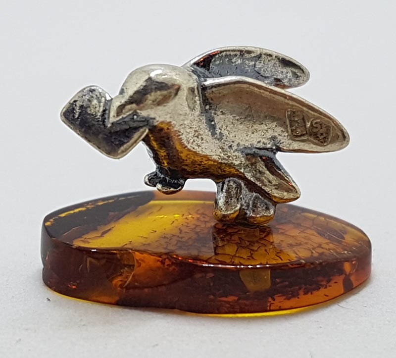Love Letter Carrying Bird / Pigeon / Dove – Solid Sterling Silver Natural Baltic Amber Small Animal Figurine / Statue / Sculpture