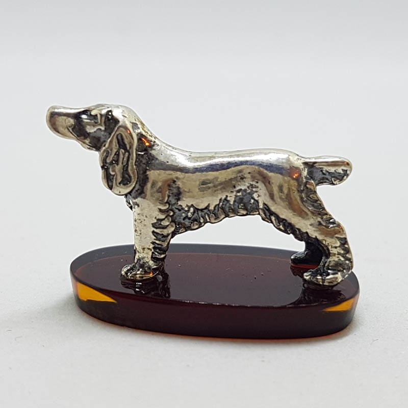 Spaniel Dog – Solid Sterling Silver Natural Baltic Amber Animal Figurine / Statue / Sculpture