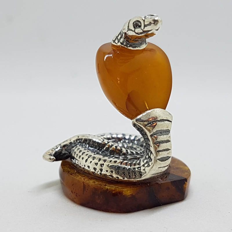 Snake / Cobra / Adder / Reptile – Solid Sterling Silver Natural Baltic Amber Small Animal Figurine / Statue / Sculpture