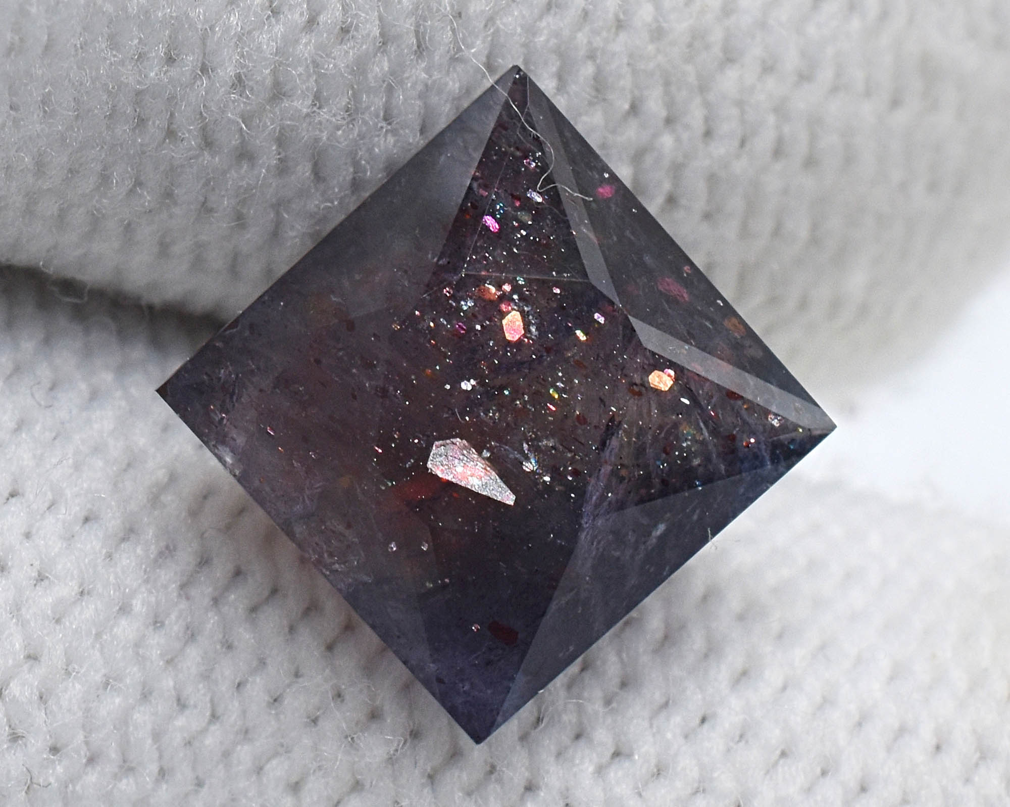 Princess Cut 10 MM Bloodshot Iolite Sunstone Square Shape With Multi Glitters Sparkling Iolite Sunstone For Beautiful Jewelry Making BI-500