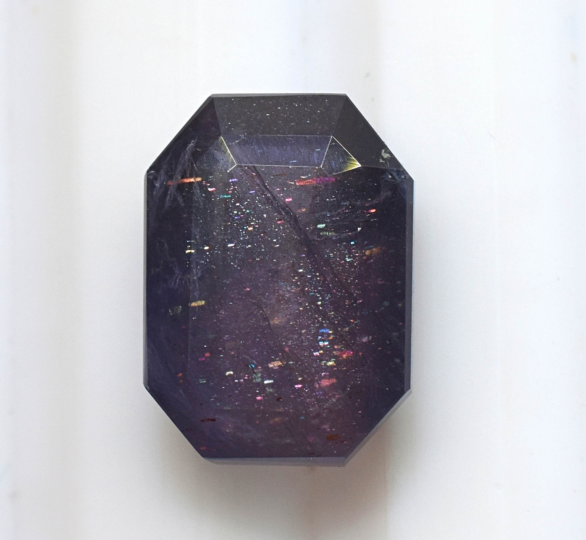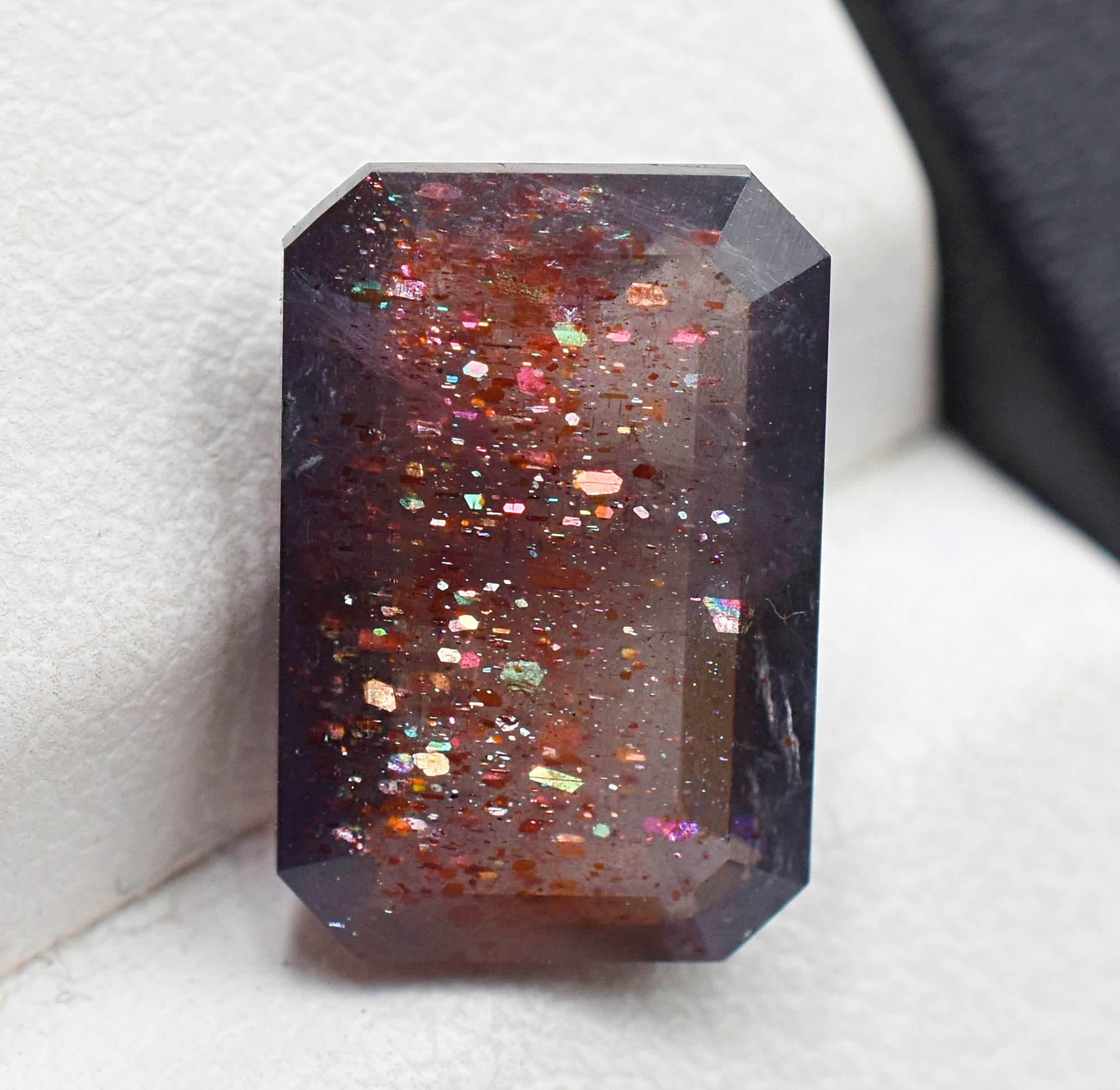 Checker Cut Bloodshot Iolite Sunstone 10.5 MM Emerald Cut With Multi Glitters Sparkling Iolite Sunstone For Beautiful Jewelry Making BI-530