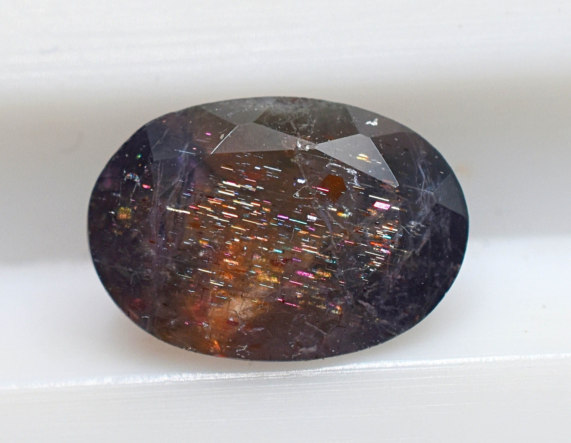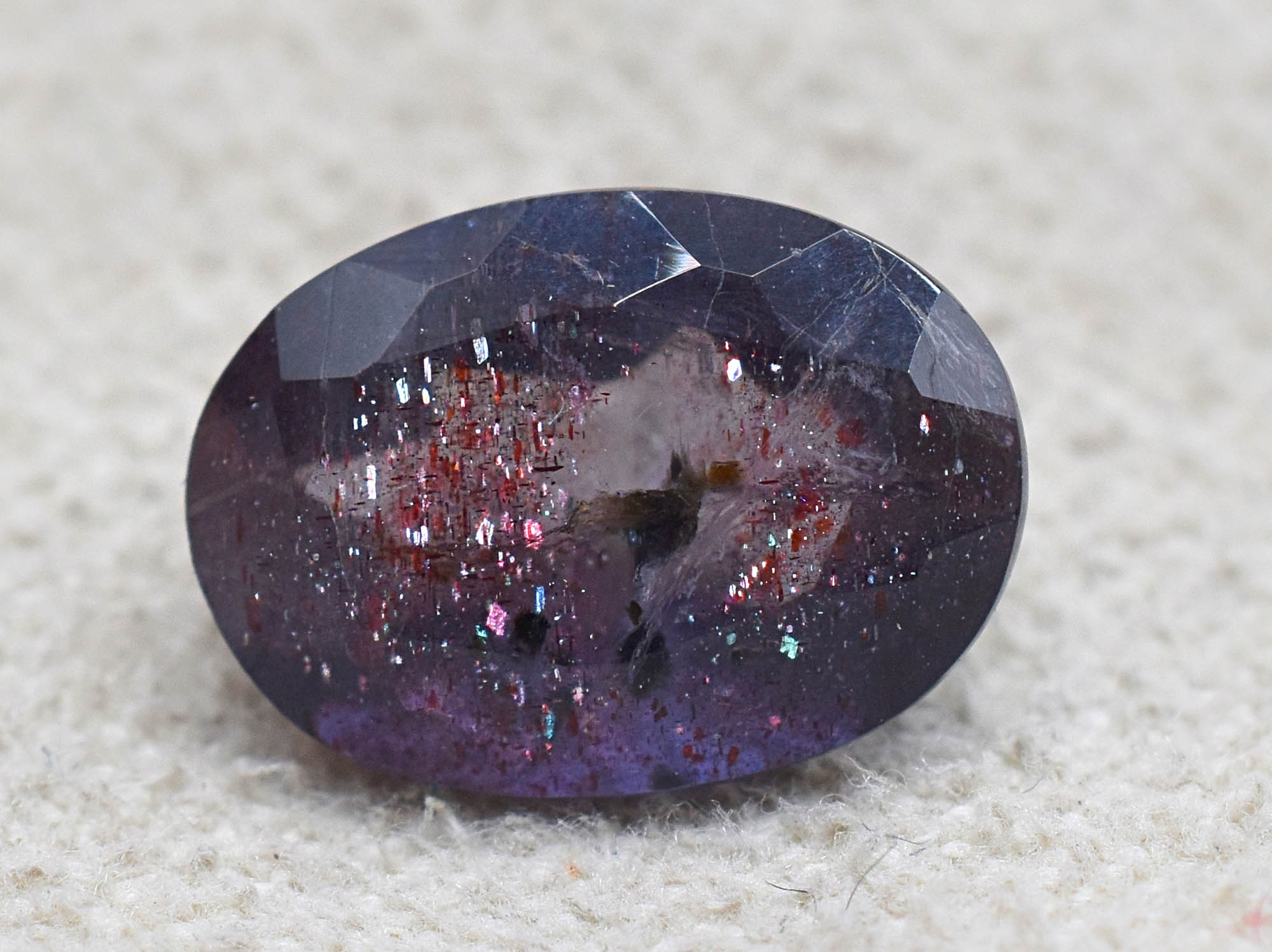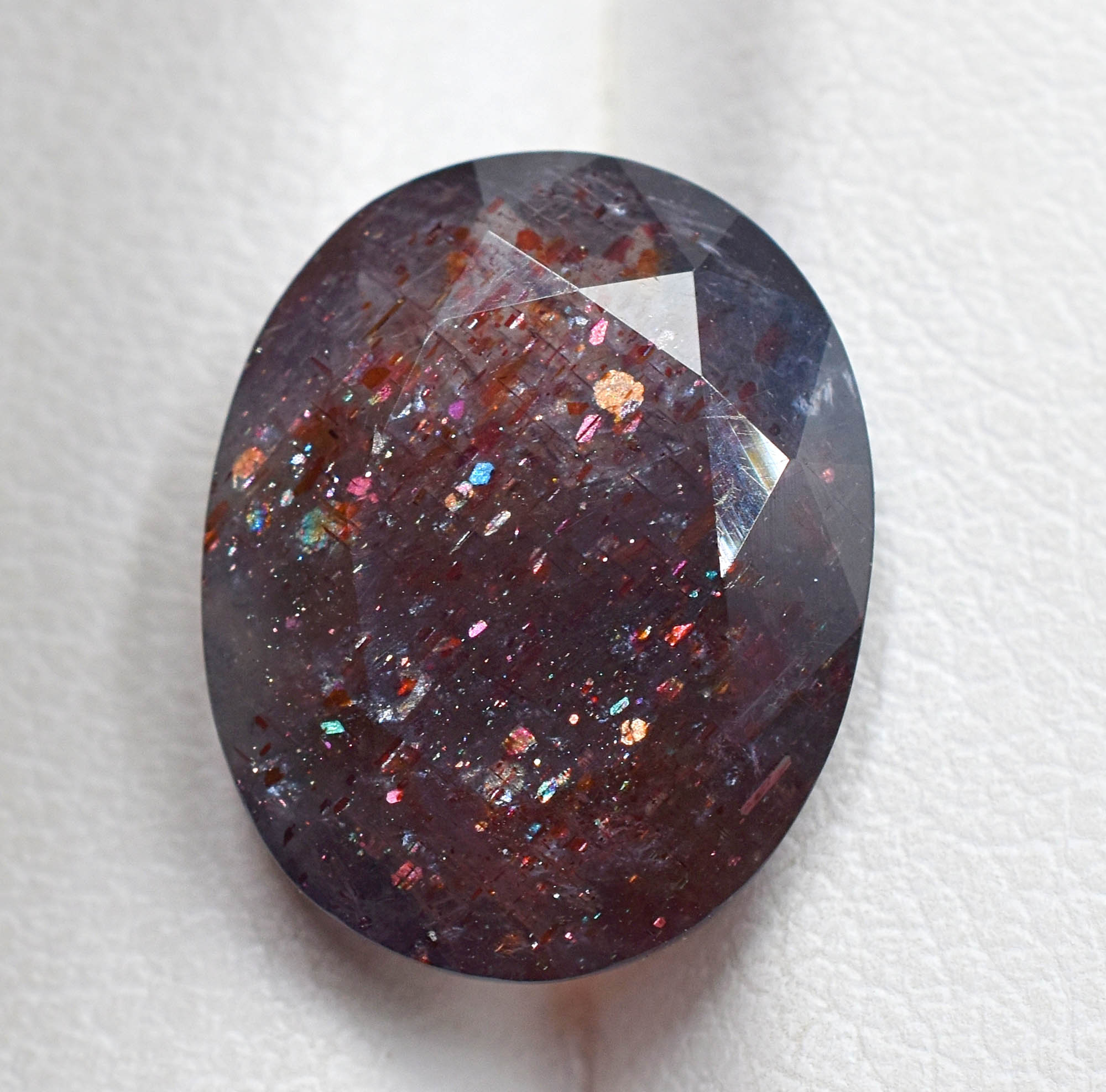 Checker Cut Bloodshot Iolite Sunstone 10X13 MM Oval Shape With Multi Color Sparkling Iolite Sunstone For Beautiful Jewelry Making BI-501