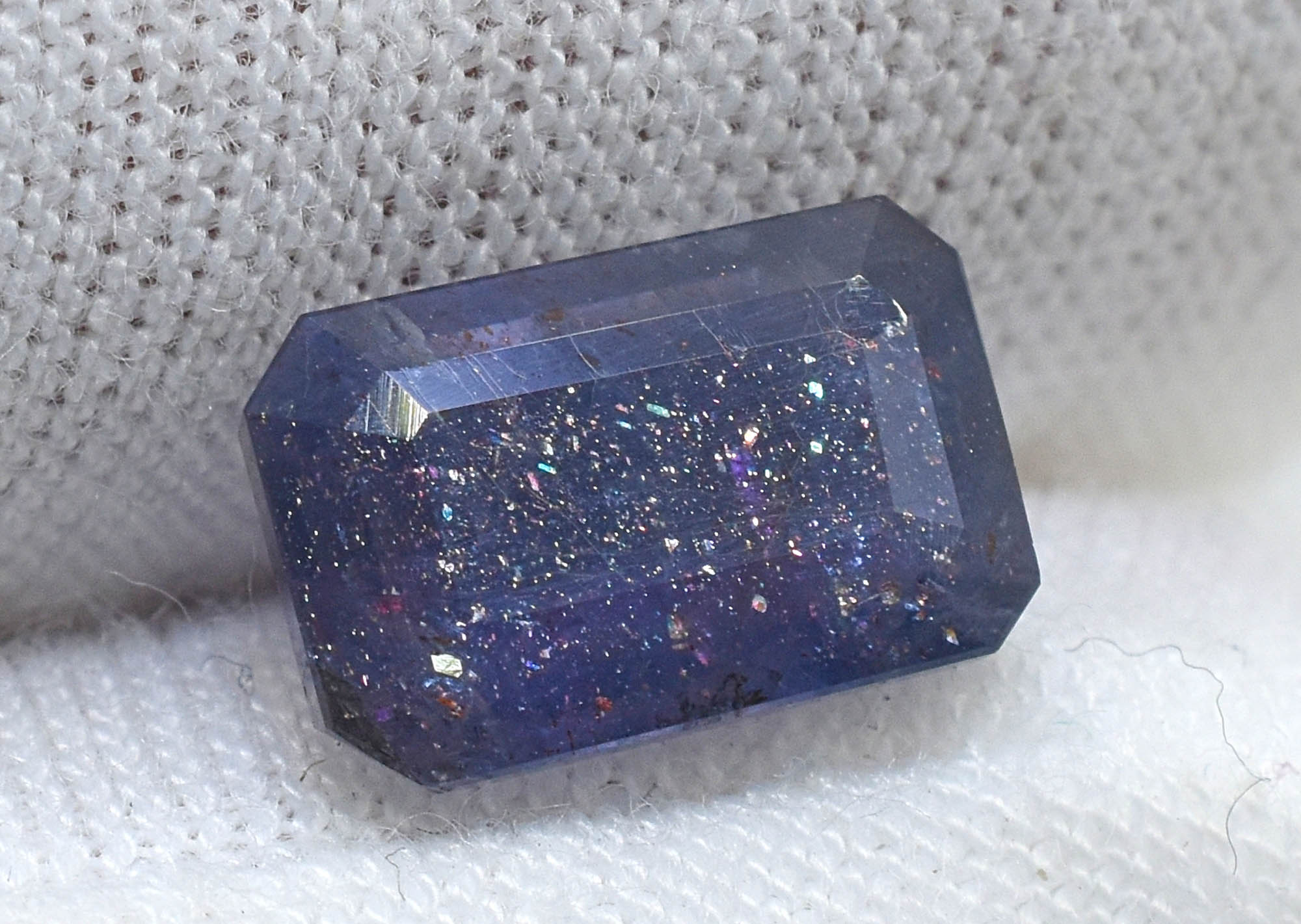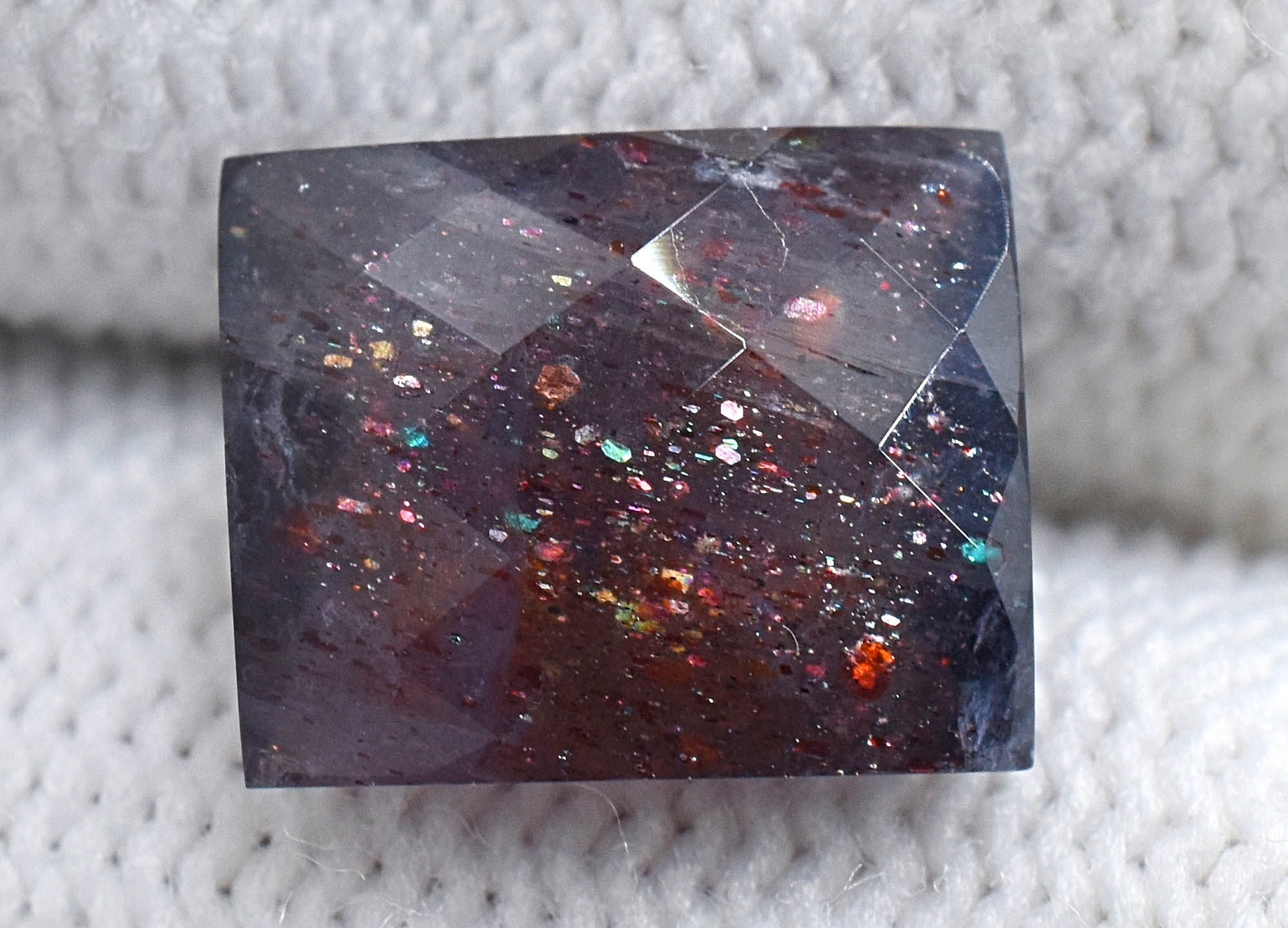 Checker Cut Bloodshot Iolite Sunstone 9X11 MM Rectangle With Multi Color Glitters Sparkling Iolite Sunstone For Jewelry Making BI-525