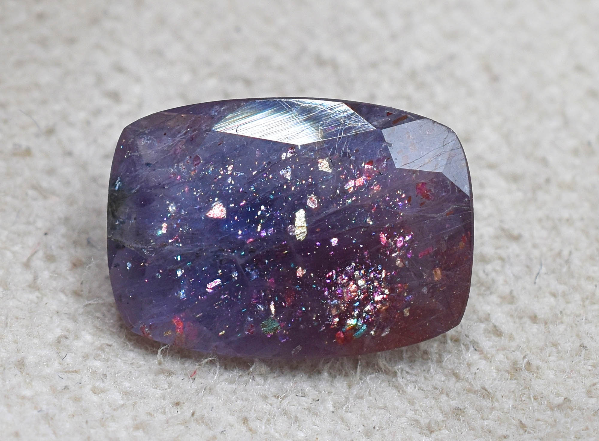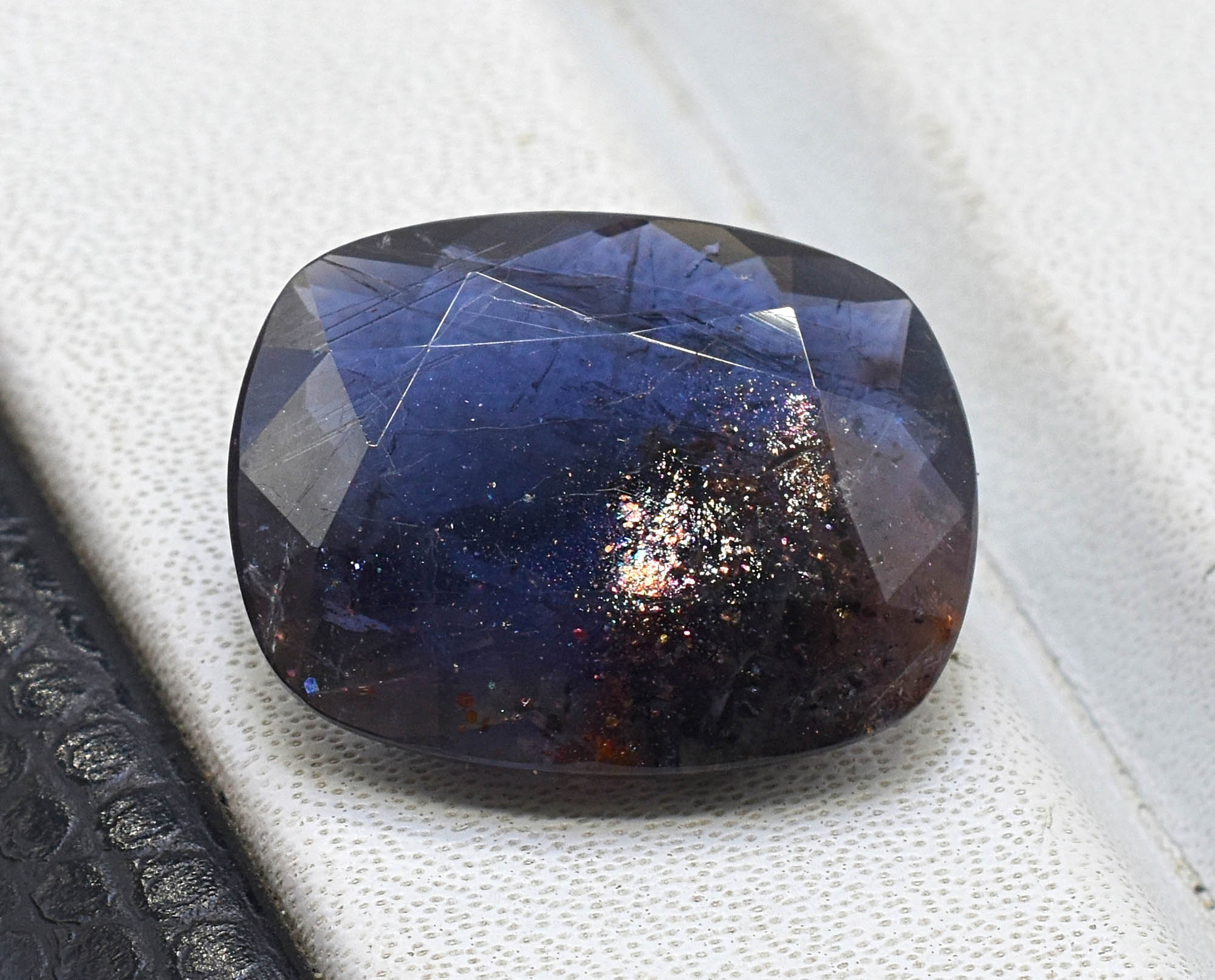 Multi Color Bloodshot Iolite Sunstone 7.5X10 MM Cushion With Multi Glitters Sparkling Iolite Sunstone For Beautiful Jewelry Making BI-516