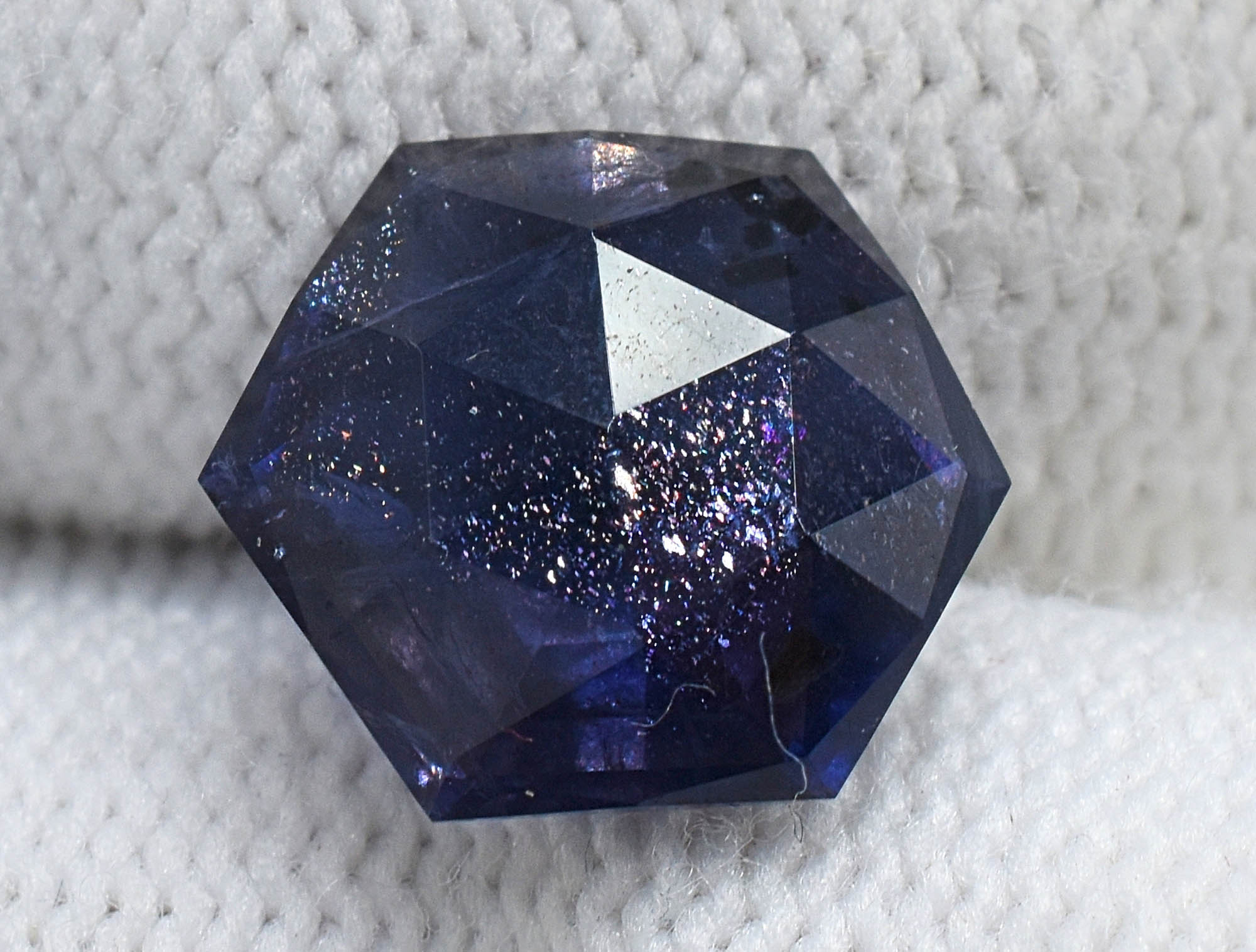 Royal Blue Bloodshot Iolite Sunstone 11.5 MM Checker Cut With Multi Glitters Sparkling Iolite Sunstone For Beautiful Jewelry Making BI-531