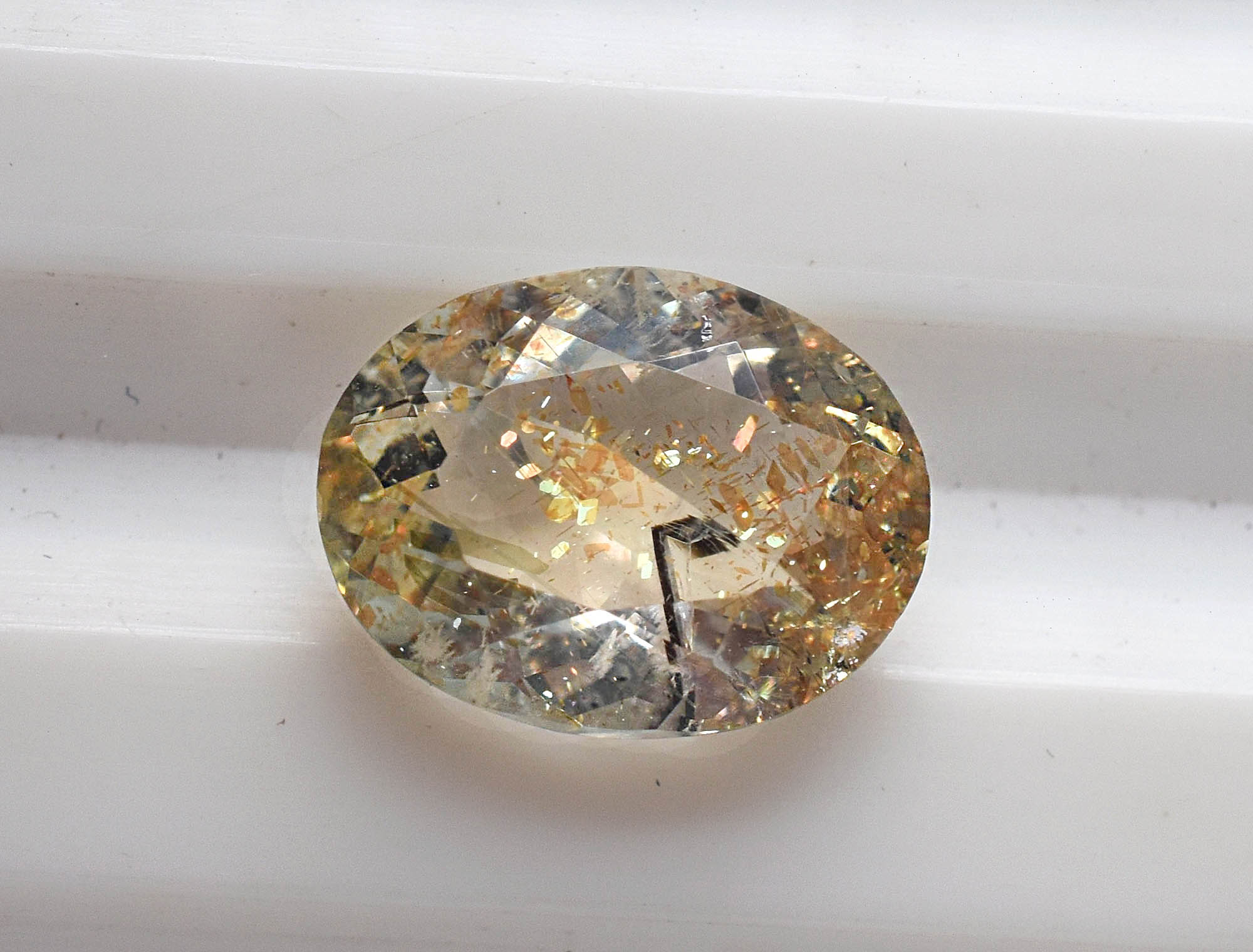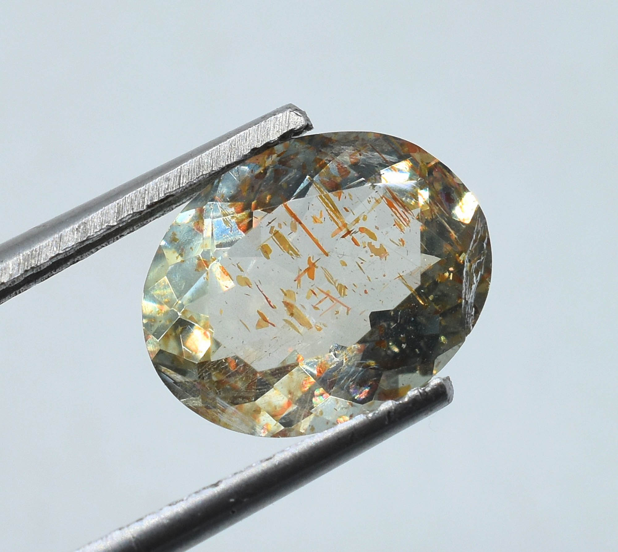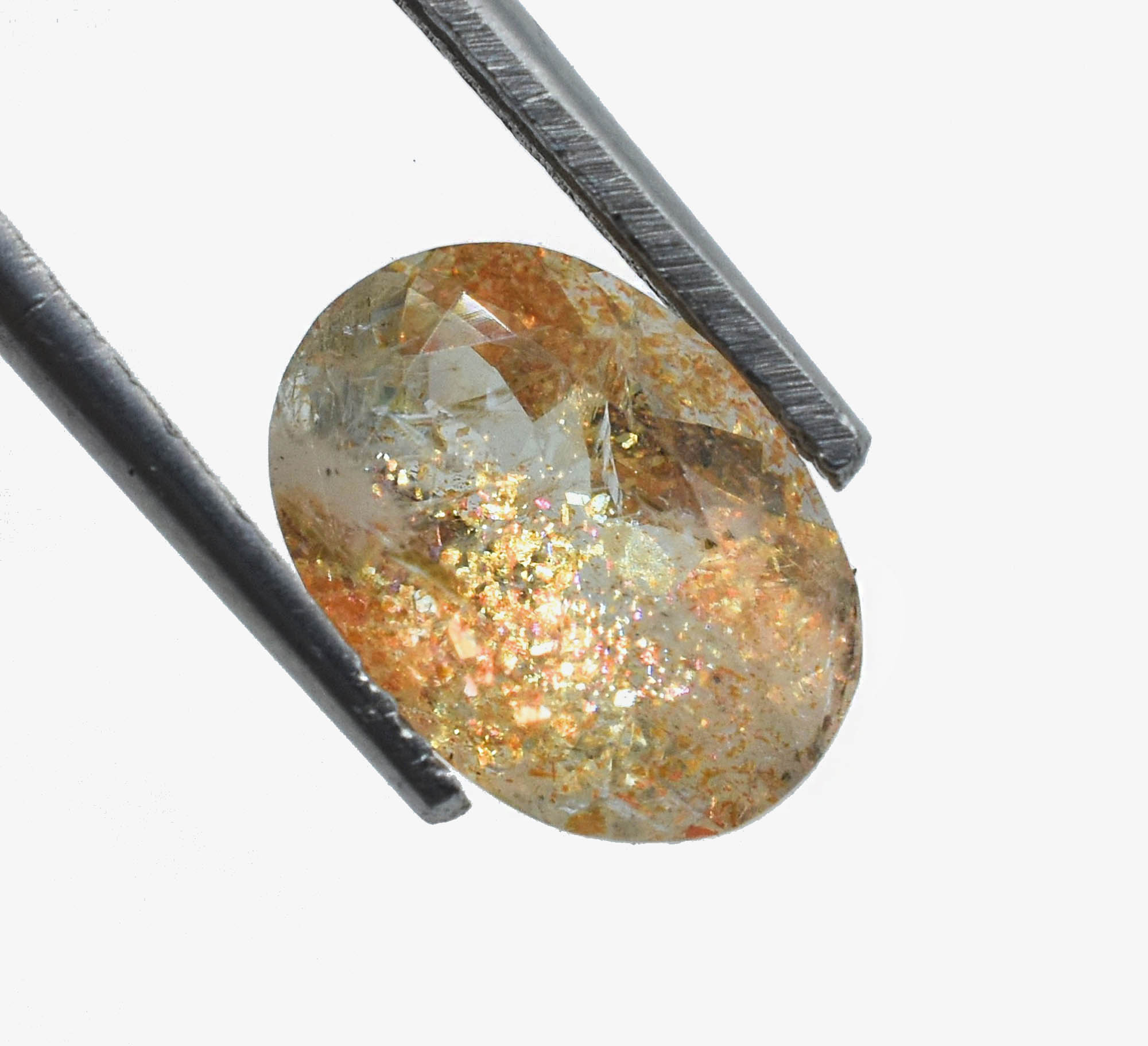 CONFETTI SUNSTONE With Multi Flake Sparkling 6X8.2 MM Filled With Rainbow Lattice Multi Flakes Sunstone For Jewelry Making Cs-571