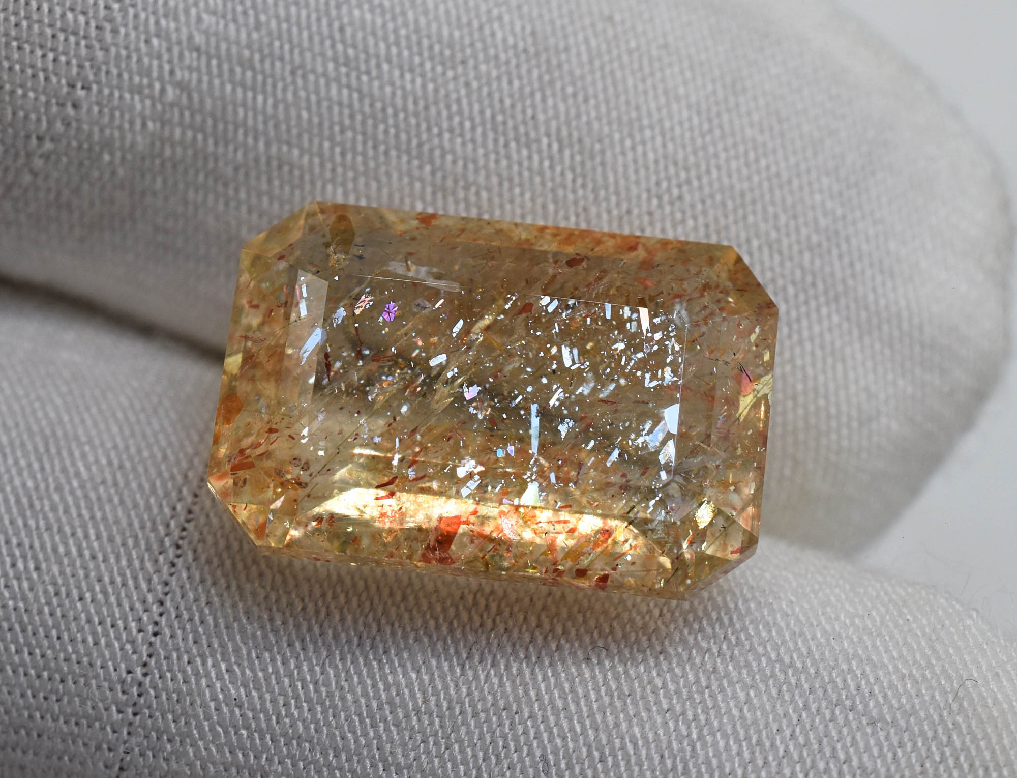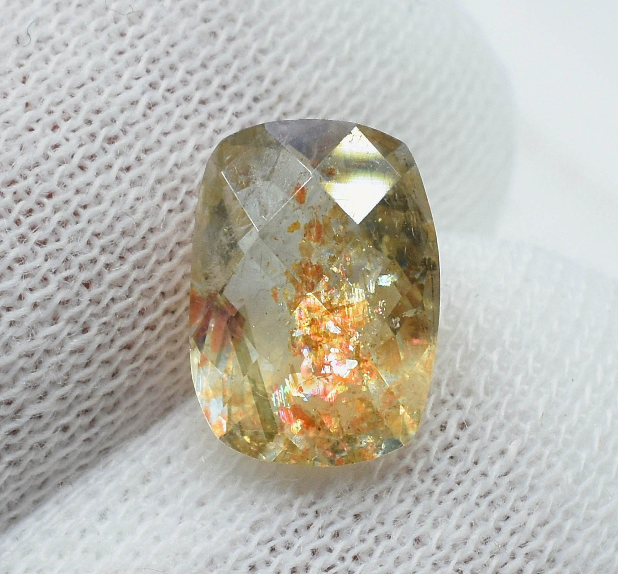 Beautiful Multi Flakes Sunstone Sparkling Checker Cut 7.5X10.3 MM Filled With Rainbow Multi Flakes Sunstone For Jewelry Making Cs-529