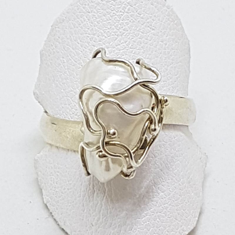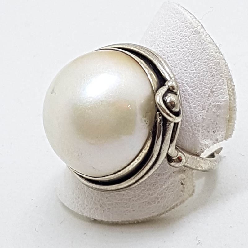 Sterling Silver Mabe Pearl Ornate Twist Ring