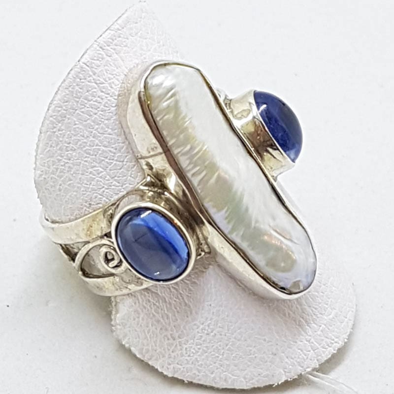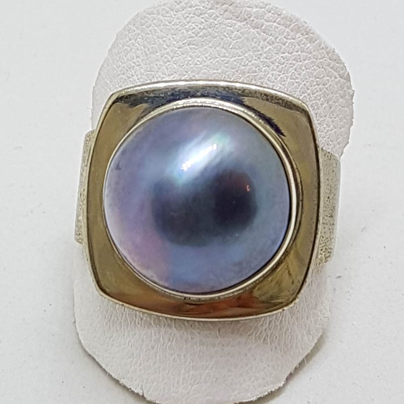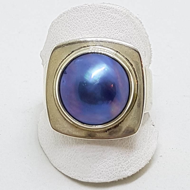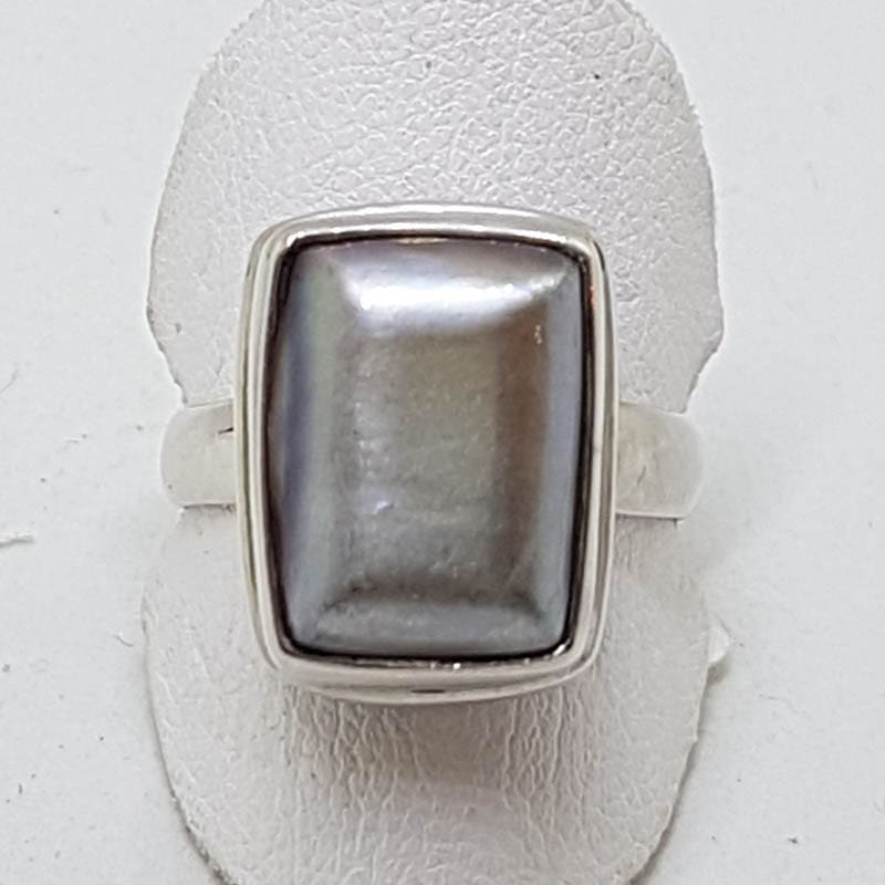 Sterling Silver Blue/Grey Mabe Pearl Square Ring