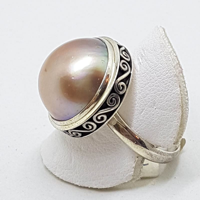 Sterling Silver Pink/Brown Mabe Pearl Ornate Rim Ring