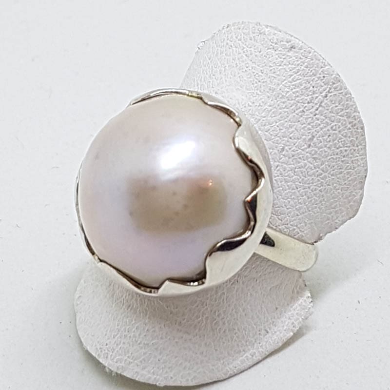 Sterling Silver Teardrop Shape Mabe Pearl Ring