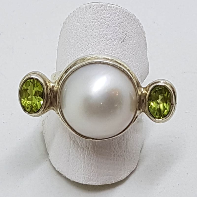 Sterling Silver Large Mabe Pearl & Peridot Ring