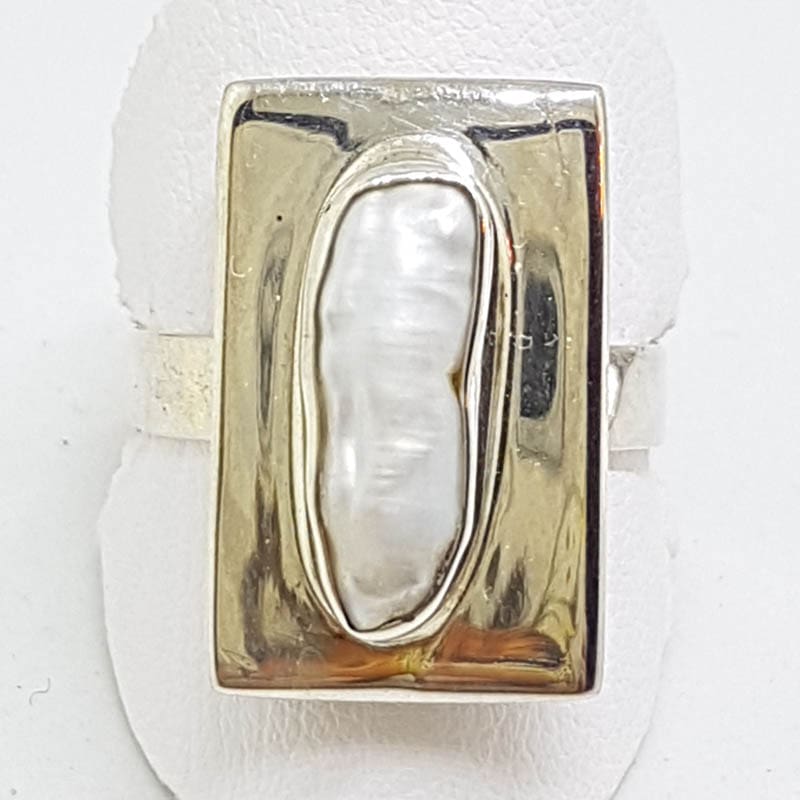 Sterling Silver Grey/Silver Pearl Rectangular Ring