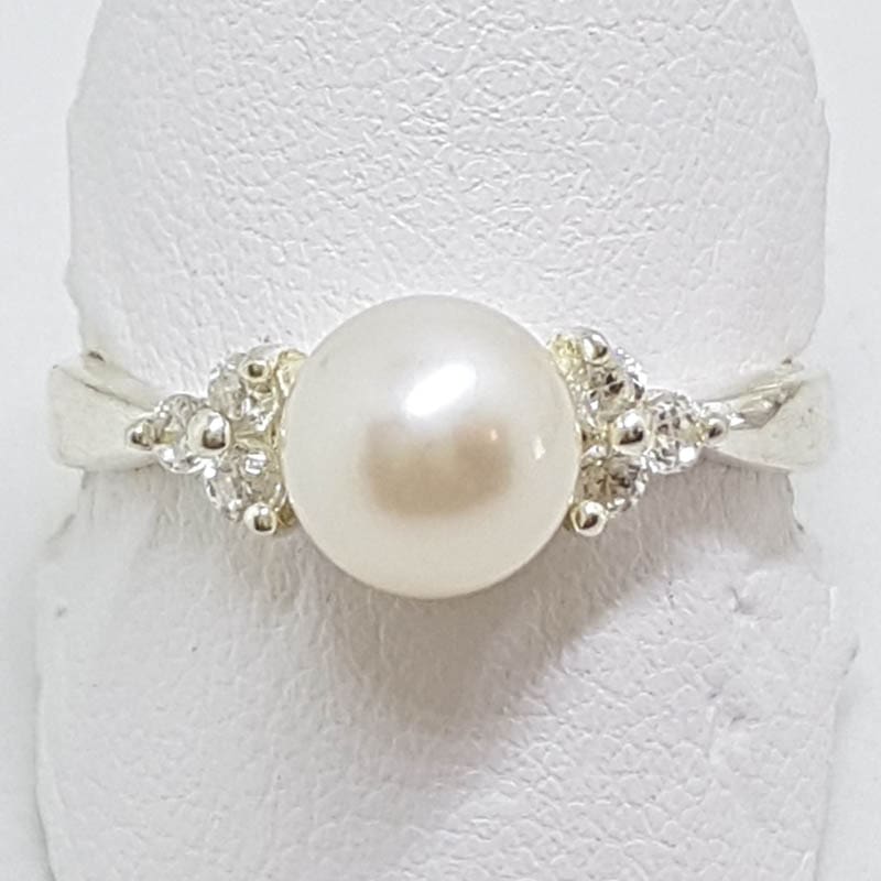 Sterling Silver Pearl & Cubic Zirconia Ring