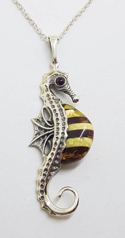 Sterling Silver Baltic Amber Seahorse Pendant on Silver Chain