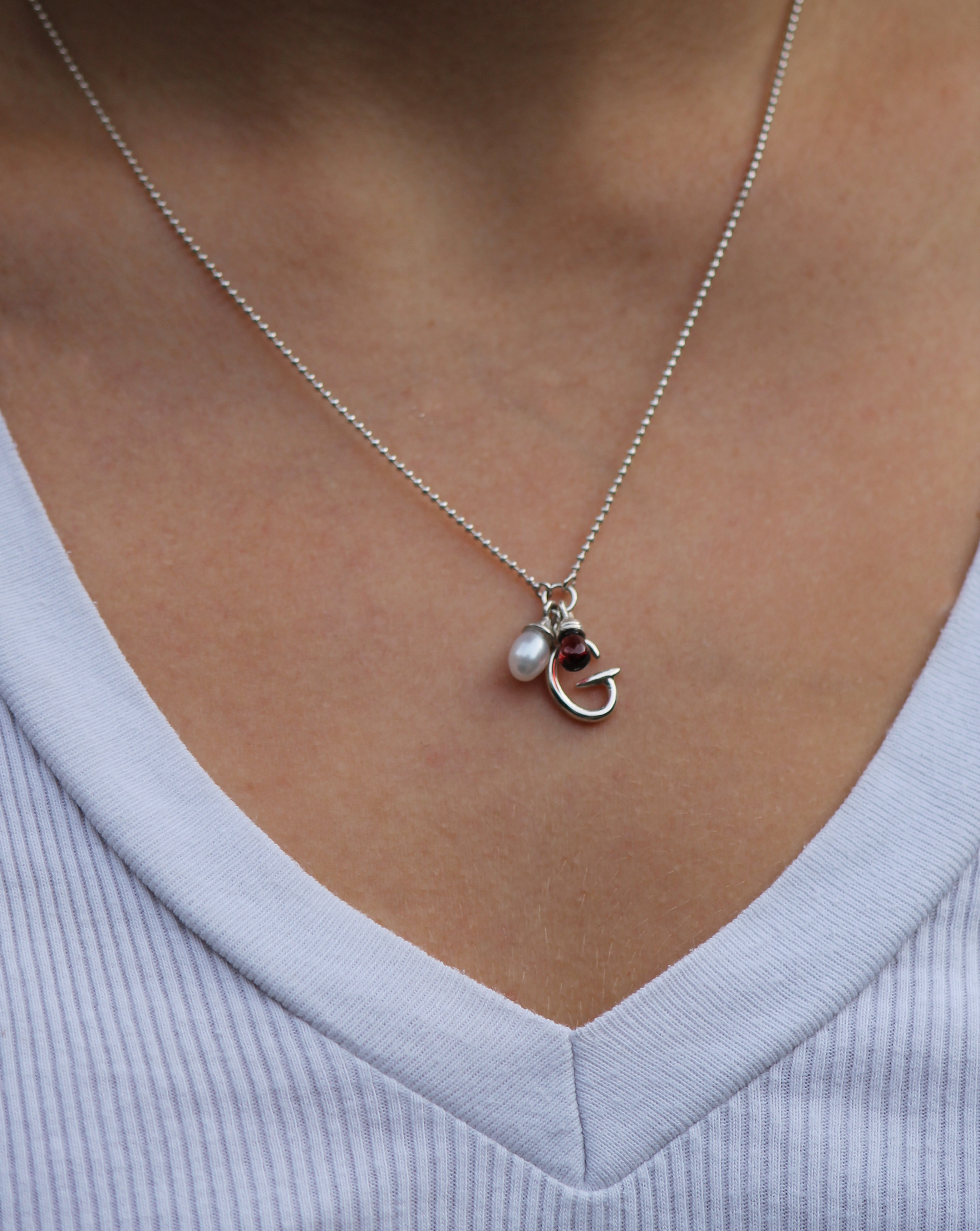 Sterling Silver Pearl and Garnet Personalised Necklace